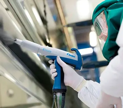 Contamos con pistolas manuales y automáticas de aplicación de recubrimientos en polvo y recubrimientos líquidos.